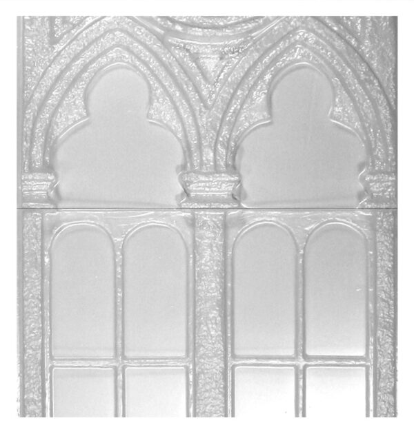 Gothic Window can be formed in clear, translucent or white plastic. Gothic Window can be painted to simulate stained glass.